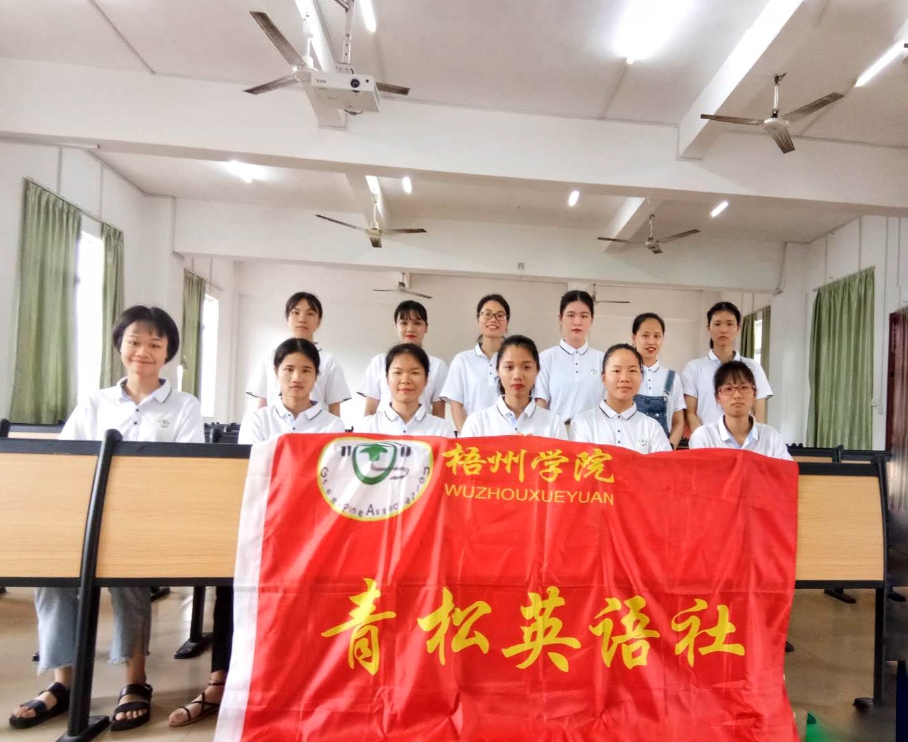 梧州学院青松英语社成立于2005年,是由我院各英语爱好者,以“自由、自愿”为原则组成的群体性、非营利性的英语学习社团,社团始终积极开展各项活动。我社以英语口语交流、培养英语写作兴趣为目标,让同学们在参与英语活动的过程中收获知识、友谊,使自己的英语口语能力等各方面得到提升,提供更多的交流平台。