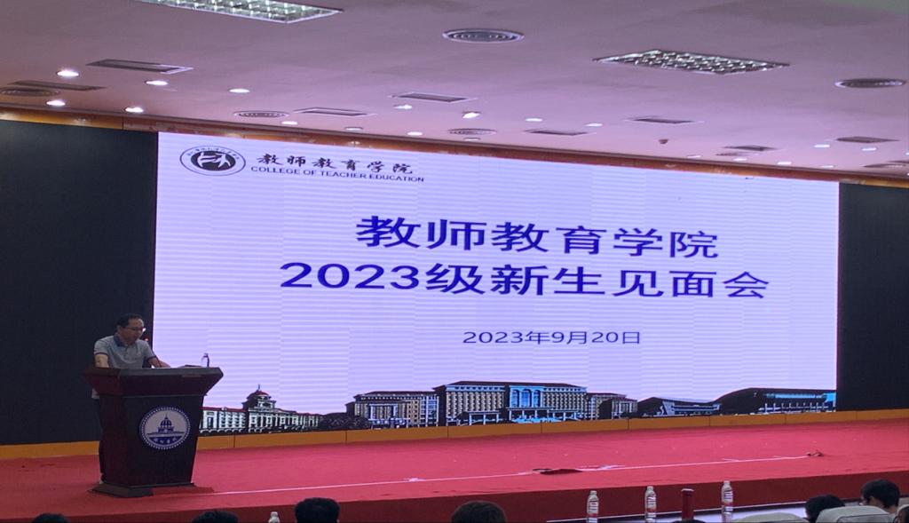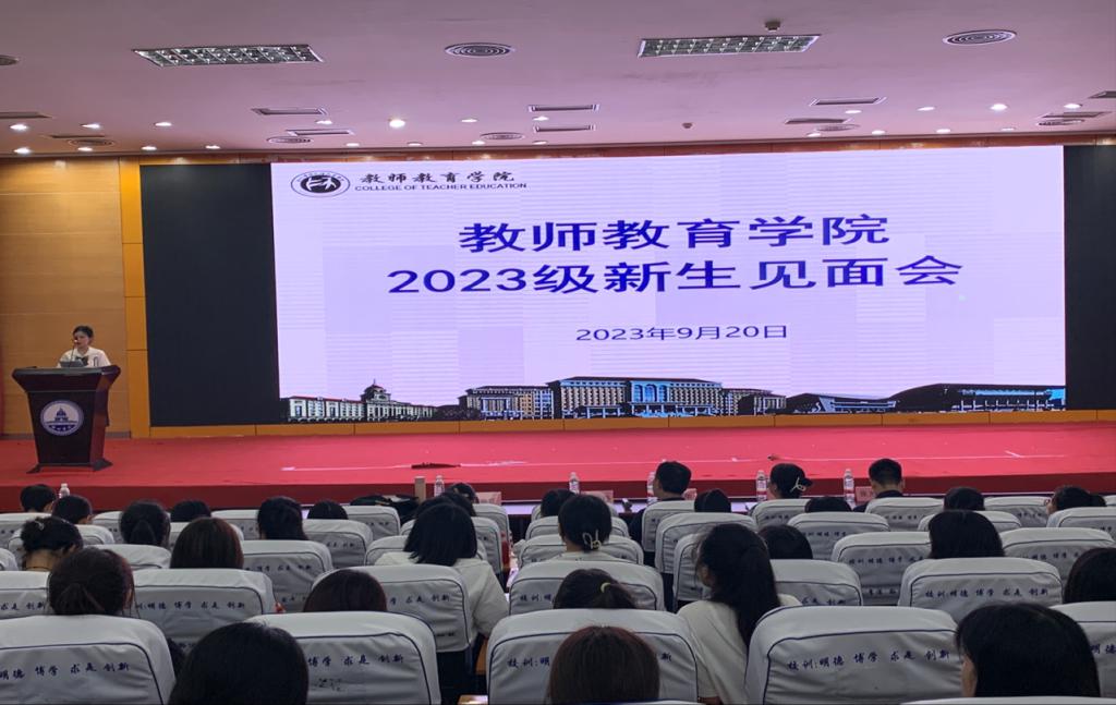 2023年9月21日晚,梧州学院教师教育学院2023级新生见面会在明理楼学术报告厅顺利举行,教师教育学院党委书记黄焕克、教师教育学院院长谢龙华、教师教育学院党委副书记何志伟及党政办公室主任、专职组织员、各专业教研室主任、全体辅导员及全体新生出席了本次会议,会议由学院党委副书记何志伟主持。