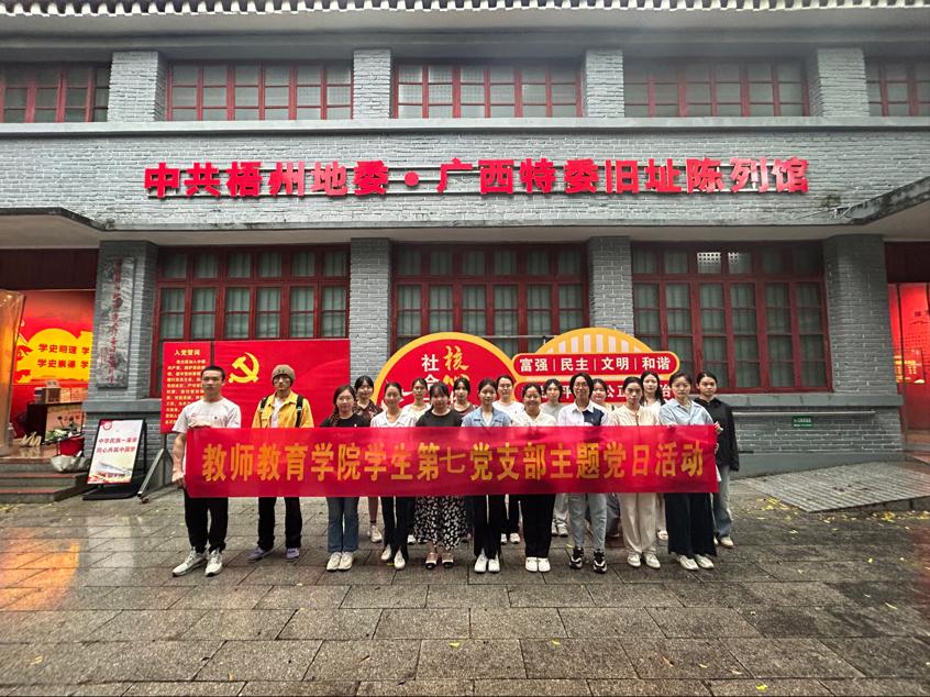 2024年4月20日上午,教师教育学院学生第七党支部书记黎冬燕老师带领支部党员去到中共梧州地委·广西特委旧址陈列馆参观学习。