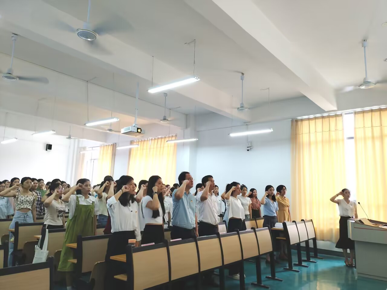 接着,毕业生党员代表莫韦坤分享自己在校的收获和感悟,并对学院的栽培表达感谢。最后,陈燕老师带领全体毕业生党员重温入党誓词,讲解毕业生党组织关系转接的程序和注意事项。