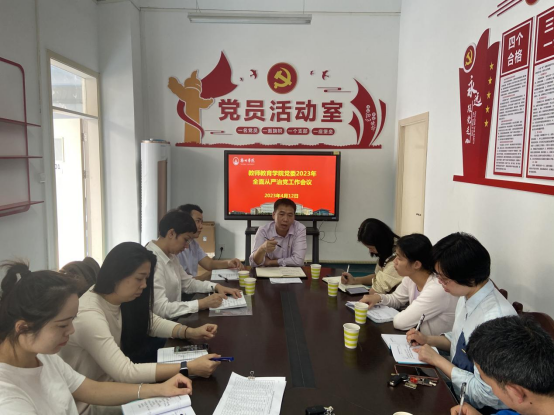 4月12日下午,教师教育学院党委组织召开2023年全面从严治党工作会议,会议由学院党委书记黄焕克主持,学院党委委员、各党支部书记参加会议。