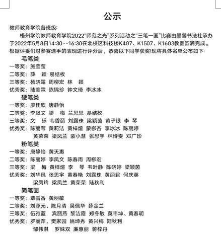 2022年5月8日教师教育学院在我校科技楼15楼举办以“书情画意颂党恩,翰墨飘香传喜悦”主题的“师范之光”系列活动之“三笔一画”比赛。