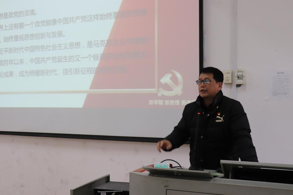 为深入学习贯彻习近平新时代中国特色社会主义思想和党的十九大精神,强化党员党性意识和宗旨观念,激励广大党员树立崇高理想信念,树牢“四个意识”、坚定“四个自信”、做到“四个服从”,持续推进“两学一做”学习教育常态化制度化,激发广大党员不忘初心,牢记使命,务实担当,攻坚克难,勇于创新,争先创优的干事创业热情,教师教育学院党委组织全体党员在师范校区C504教室举办新学期专题党课。党委书记梁文忠负责主讲此次专题党课。