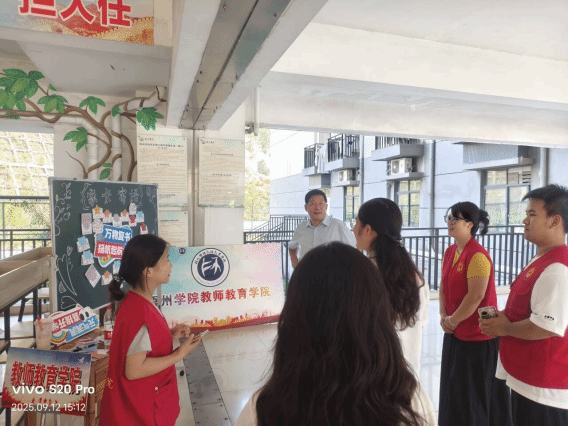 秋阳和煦的 9 月 12 日,梧州学院教师教育学院迎来了怀揣梦想的 2025 级新生,为校园添上了鲜活的新色。清晨七点,师生志愿者已早早整装等候,将迎新的暖意藏在每一处细节里:新生宿舍的书桌上,“老生寄语卡片” 静静躺着,字句皆是学长学姐的真诚叮嘱;宿舍楼前的家长寄语板上,父母的期盼与牵挂化作温暖的文字,轻轻抚平新生初来的局促。