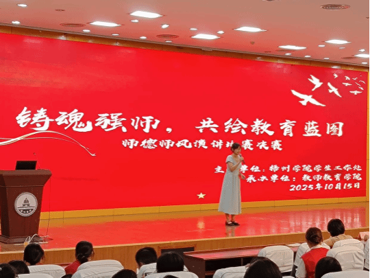为全面落实立德树人根本任务,深化师范生对师德师风内涵的理解与践行,2025年10月,梧州学院教师教育学院成功举办“铸魂强师,共绘教育蓝图”师德师风演讲比赛。比赛由梧州学院学生工作处主办,教师教育学院承办,分为10月11日初赛与10月15日决赛两个阶段。