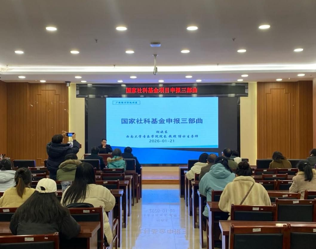 1月21日下午,西南大学音乐学院院长胡晓东教授受邀走进梧州学院教师教育学院,以《国家社科基金项目申报三部曲》为题开展专题讲座。