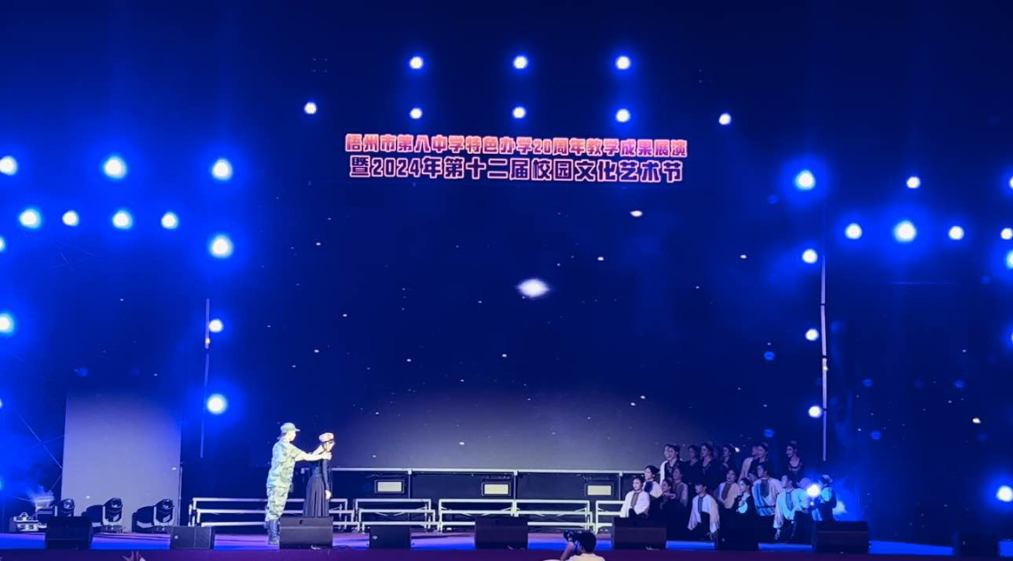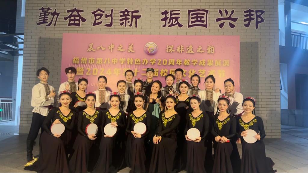 2024年4月29日晚上,学校教师教育学院的舞蹈学专业学生组成的青年舞团,荣幸地受邀参与了梧州市第八中学举办的特色办学20周年教学成果展演和第十二届校园文化艺术节晚会。此次活动的目的是丰富教学实习和科研基地的实践功能,强化院校间的合作与沟通,提升学生的专业技能与实践经验。通过这一平台,双方展示了在教学与实践方面的杰出成果,同时也为学生提供了一个展示才华的机遇。本次活动由教师教育学院副院长陈洁带队,参加的老师有教工第二支部书记黄懿老师、舞蹈学教研室主任蒙妍老师、音乐学教研室主任张光剑老师以及相关专业教师。