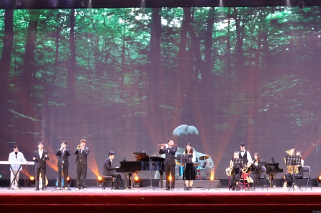 聚光灯落,汇报演出在破阵子乐队《霍元甲+菊花台+女儿情》极具中国风的歌声中正式拉开帷幕;一曲《最美的太阳》燃动全场,男女生对唱,尽显歌唱技巧之高超;二胡的悠扬缠绵交织着钢琴的清脆乐律,《风居住的街道》一曲此时化成风般吹入现场观众耳中;民歌串烧《水韵》的乐声如水般蜿蜒不断,暗喻着中国民歌的源远流长、不断发展;钢琴民乐《欢沁》将钢琴、琵琶、笛子三者结合,俏皮活泼,欢乐情绪沁入现场观众心扉;“人生难得是欢聚,惟有别离多”,《城南送别》歌声响起,引得现场毕业离别愁绪愈浓;双钢琴叠加马林巴、小军鼓、铃鼓等打击乐器,《节日曲》形式新颖、旋律欢快;中场舞蹈串烧青春气息四溢,舞者们朝气蓬勃,;热情洋溢的民族管弦乐《金蛇狂舞》仿佛将人带入到了欢腾的节日场景中;小品《斗琴》以幽默的形式再现了音乐学专业学子们平日的练琴日常;歌舞《奇迹再现》气势十足,曲调激荡人心;琵琶齐奏《霸王卸甲》生动演绎了项羽的英雄悲剧;阵阵葫芦丝声清轻淡雅,丝丝入扣,《月光下的凤尾竹》一曲使人仿佛置身于绿意盎然的竹林中;歌剧《灿若星辰的目光》在歌声中将水红莲与秦啸生的爱情故事娓娓道来,表达了对爱情的美好向往;钢琴协奏《圣诞快乐劳伦斯先生》的音乐精神直击心灵,不断鼓舞着音乐学子们;大合唱《稻香》《那些年》以歌声为载,四年大学生活一幕幕在眼前闪过。