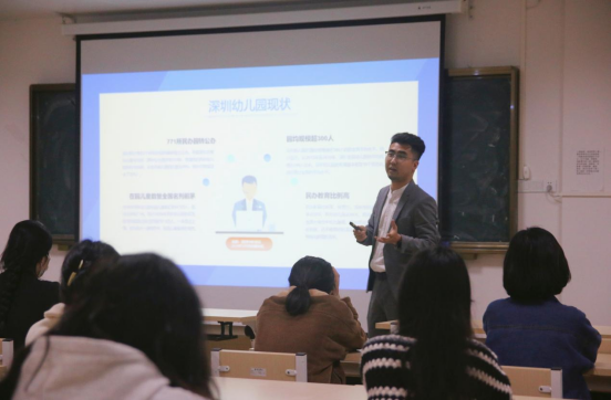 宣讲会上,京发教育田旭升从当前深圳幼儿园教育行业的发展形势、就业前景、公办幼儿园待遇差别等方面进行详细讲解,并通过视频介绍了深圳幼儿园师资培养“种子计划”,还针对同学们所关心的公办幼儿园岗位招聘要求、实习期间的待遇等一系列问题进行解答,与同学们展开交流。最后,何志伟副书记鼓励同学们提早谋划,积极就业,高质量就业。
