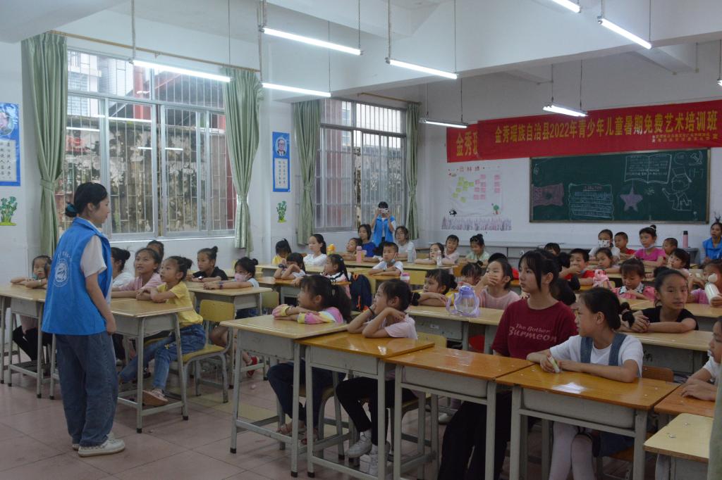 7月7日,教师教育学院在来宾市金秀瑶族自治县开展为期7天的暑期“三下乡”社会实践活动。由20名志愿者组成的青年社会实践团以铸牢中华民族共同体意识,促进民族团结为主线,以团结奋斗、繁荣发展为共同目标,依托当地红色资源,结合大学生的专业特色,开展以手工培训、合唱培训、舞蹈培训、党史宣讲、课业辅导和防艾宣传等内容的志愿服务活动。