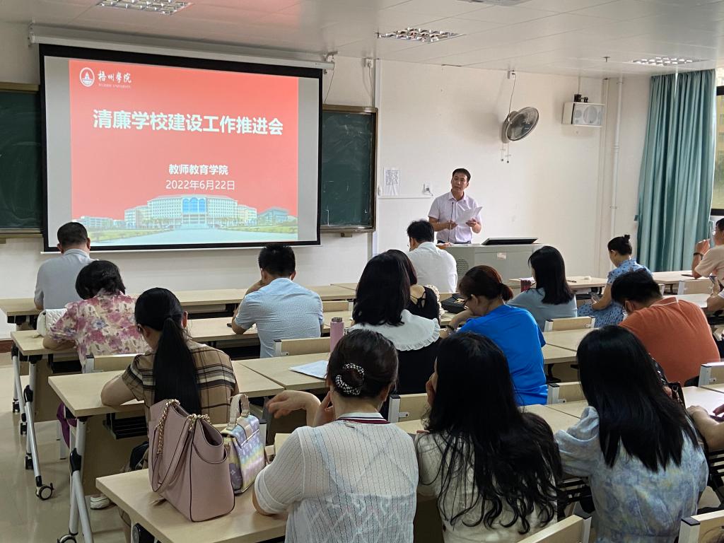6月22日下午,教师教育学院在明科楼K309教室召开清廉学校建设工作专题会,会议由学院党委书记黄焕克主持,学院全体教职员工参加会议。