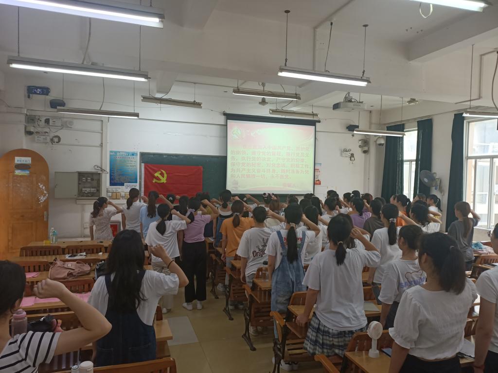 〔支部书记龙慕兰带领全体成员进行入党宣誓〕