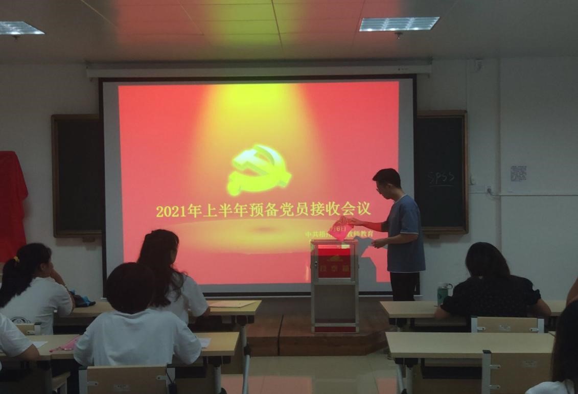 2021年6月6日和6月9日,教师教育学院学生第一党支部在K407和K307召开预备党员接收会议,出席会议的有陈驰宇、杨冬梅、黄子颖3名教师及学生第一党支部全体党员。