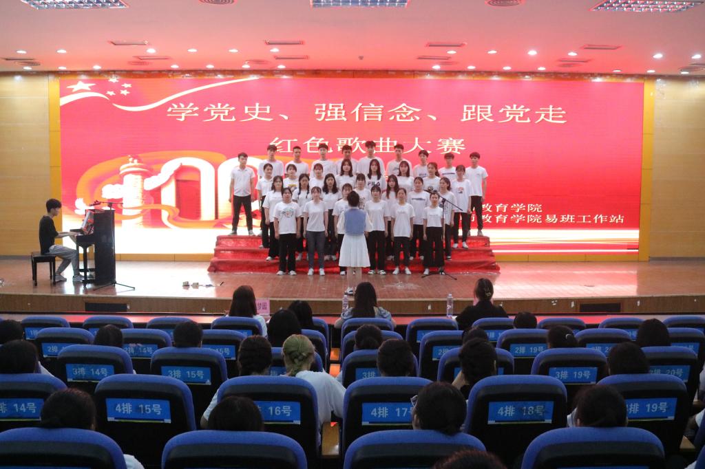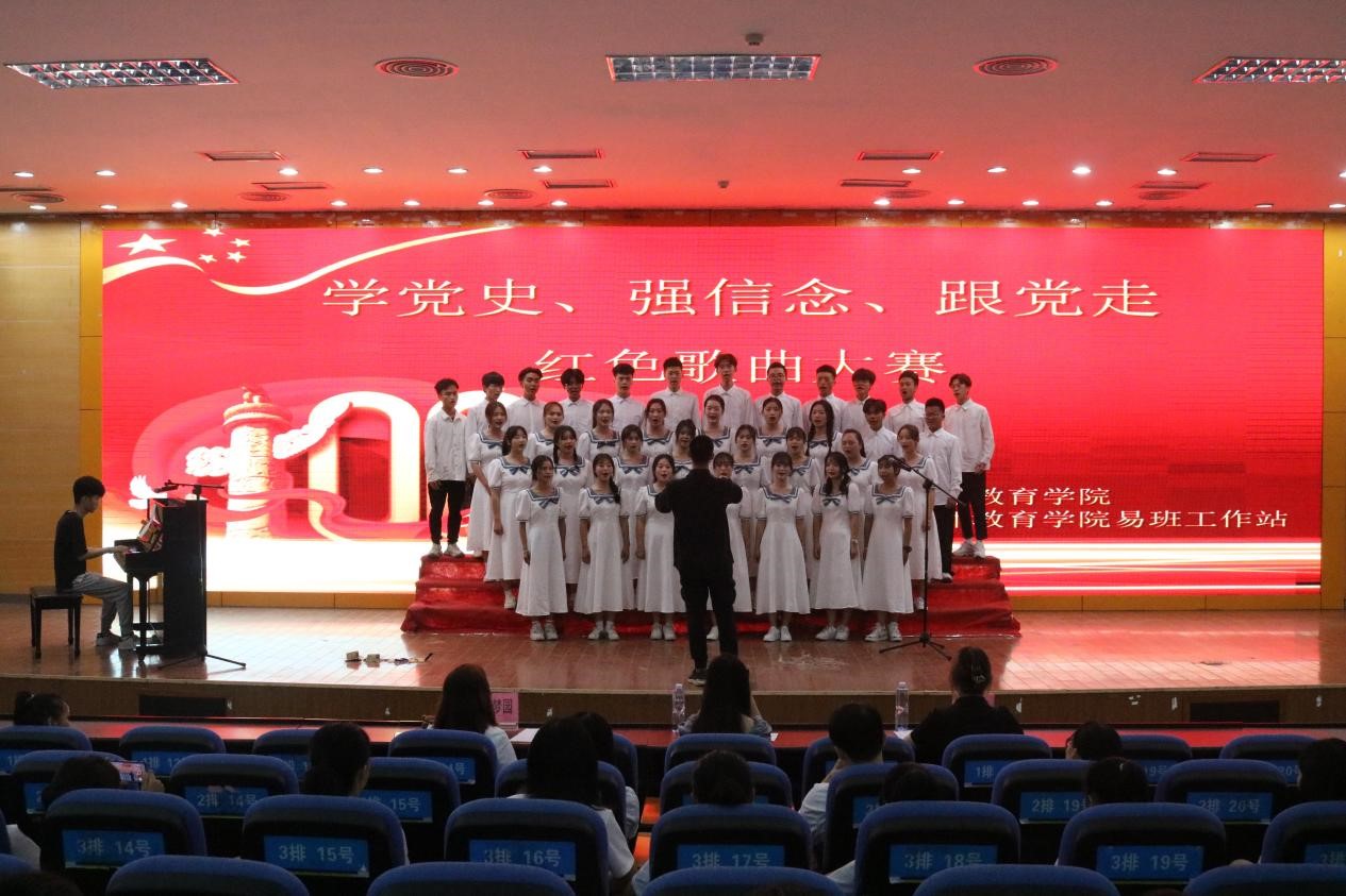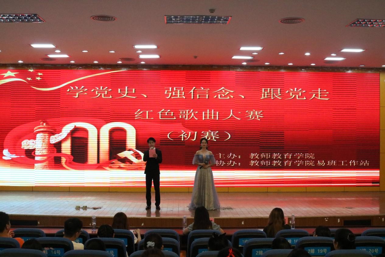 2021年5月16日18:00,教师教育学院在明理楼学术报告厅举办主题为“学党史、强信念、跟党走”红色歌曲大赛初赛,18级-20级全体学生以班级为单位进行参赛,各组织学生代表担任本次嘉宾。