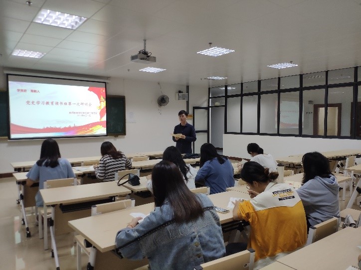 2021年4月29日晚,梧州学院教师教育学院学生第一党支部开展“党史学习教育读书班”第一次研讨会于科技楼k403进行,教师教育学院学生第一党支部书记陈驰宇老师、杨冬梅老师、黄子颖老师及支部全体学生党员出席本次研讨会。