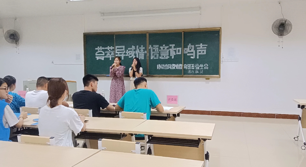 2021年4月12日19:00,由外国语学院主办,教师教育学院协办的“荟萃异域情,语意和鸣声”外文歌曲大赛初赛在科技楼k403开展。