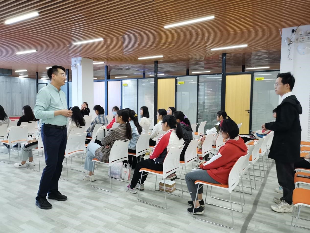 2021年4月9日晚19:30,梧州市培文学校在就业指导中心举行专题宣讲会。梧州学院毕业班学生代表参加此次会议。