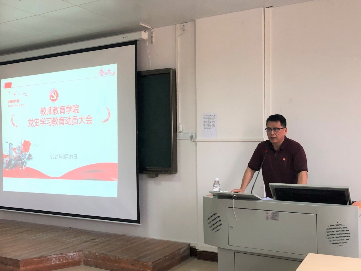 3月31日下午,教师教育学院党委在科技楼K407组织召开党史学习教育动员大会。会议由学院党委副书记、纪委书记罗吉娟主持,全体师生党员参加会议。