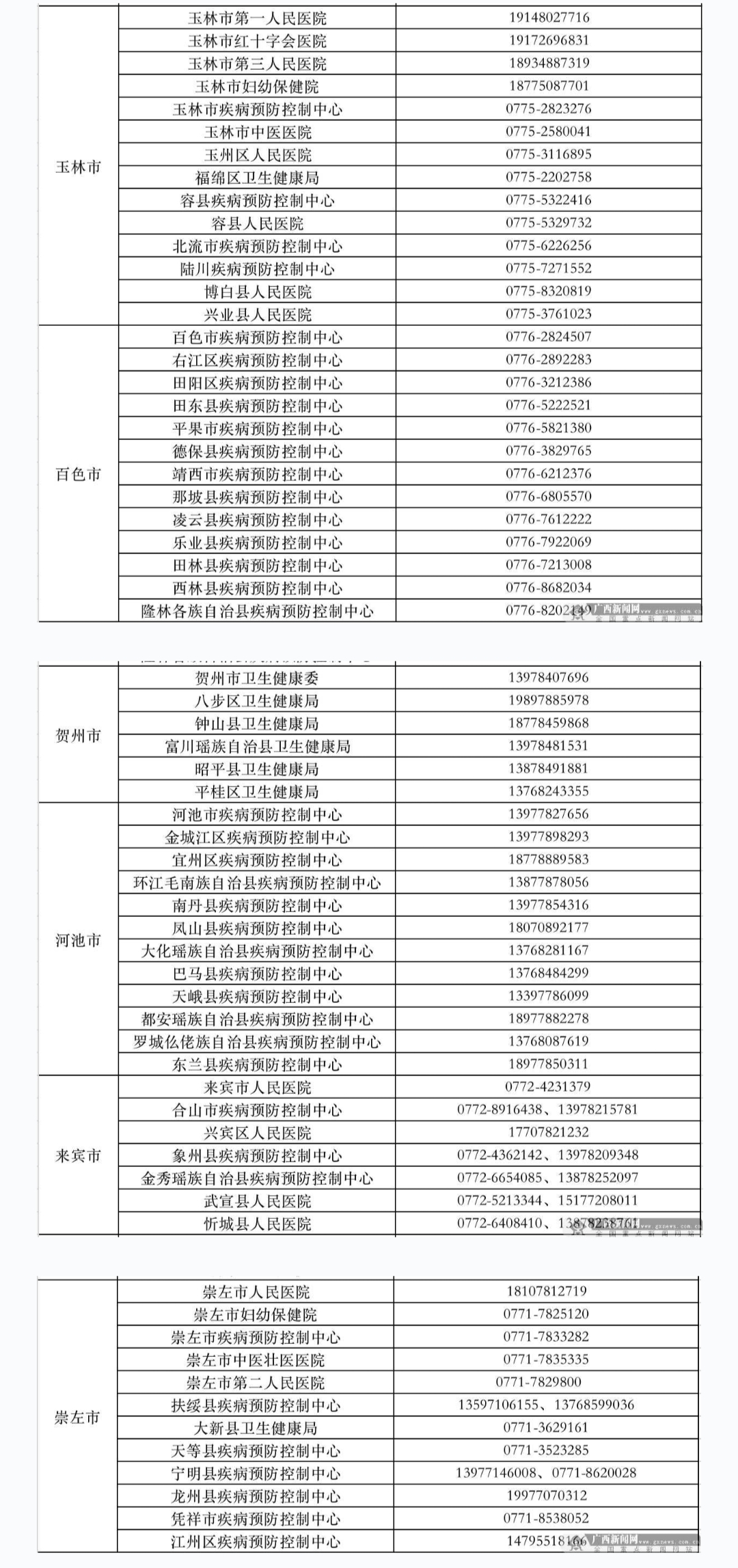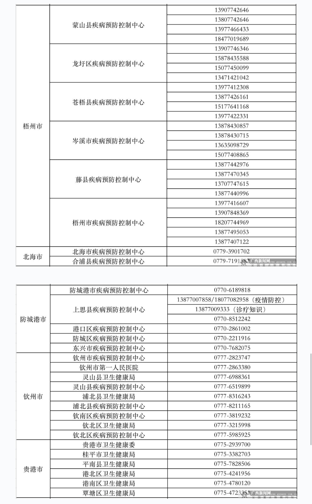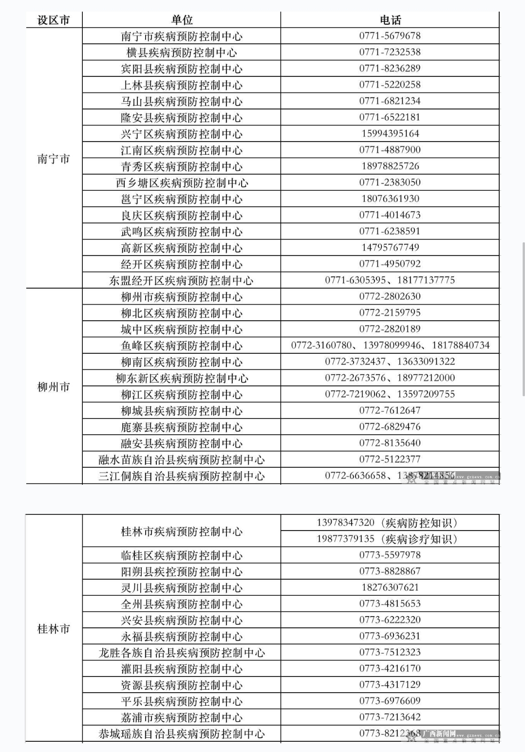 近日,为全面做好疫情防控工作,有效切断病毒传播途径,坚决遏制疫情蔓延势头,并方便广大市民咨询疫情防控和诊疗知识,广西开通并公布了14个设区市(含市、县两级)共计170个防控知识专家热线电话,均选派相关专家24小时专门值守,确保为市民及时答疑解惑。具体如下: