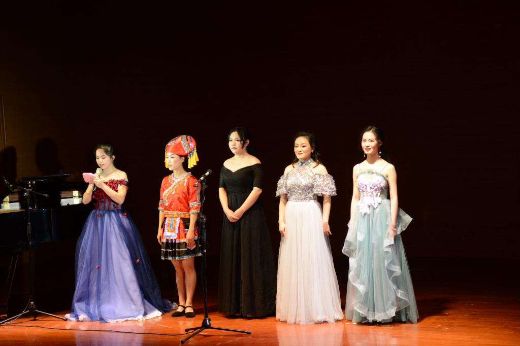黄保玉、潘媚、容代俏、李冬兰同学用优美的歌声给现场观众带来一场听觉盛宴,对在梧州学院四年的音乐学习做了一个完美的总结。四位同学用深情的歌声演唱了《老师我想你》,轻轻诉说了毕业之际对恩师的不舍之情。