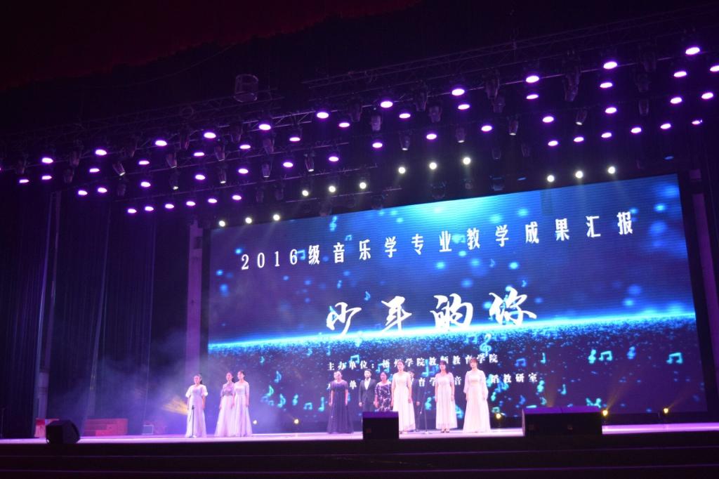 12月27号晚,教师教育学院2016级音乐学专业教学成果汇报晚会在体育馆三楼顺利举行,杨奔校长及学院相关领导老师出席晚会现场。