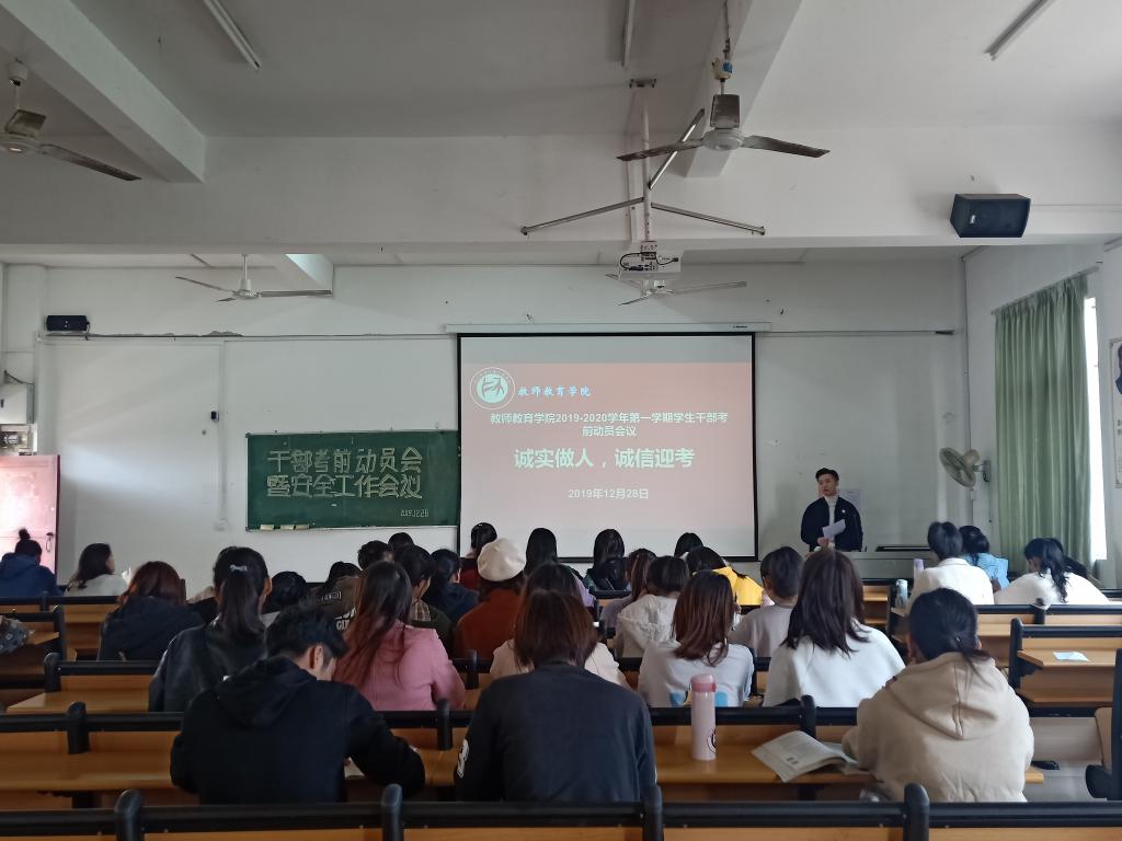 12月28日下午在教师教育学院C403召开学生干部考前动员会议,会议由青年委员陈驰宇老师主持,教师教育学院各组织学生干部参加。