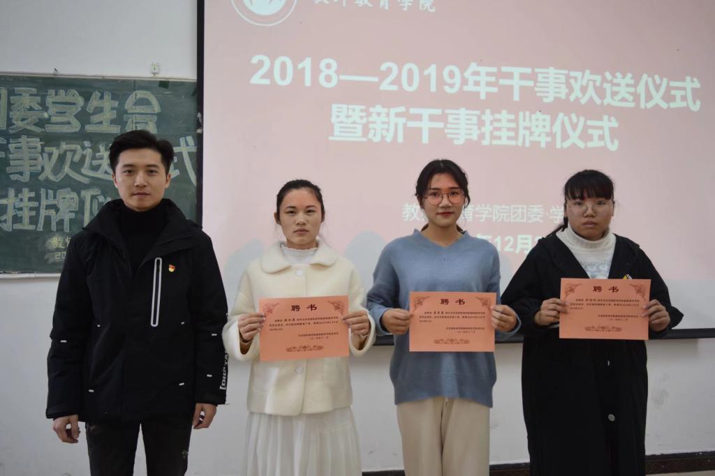 教师教育学院团委·学生会2018—2019年干事欢送仪式暨新干事挂牌仪式于2019年12月25日(今天)中午12:20在师C403教室举行。