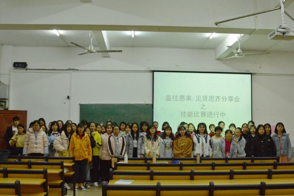 2019年12月12日晚,教师教育学院“见贤思齐”系列活动之“技能比赛进行时”在C403举行。本期分享经验的优秀学子是18学前教育专升本的苑璐。她曾荣获2018年广西壮族自治区高校技能大赛学前组一等奖;2018年广西壮族自治区第八届广西大学生“创新引领时代,智慧点亮未来”科普演讲比赛二等奖;第十一届广西中华经典诵读大赛梧州学院选拔赛个人组 一等奖;2018-2019学年上、下学期师范专业奖学金一等奖;2019年梧州学院教师教育学院师范生教学技能比赛一等奖 。