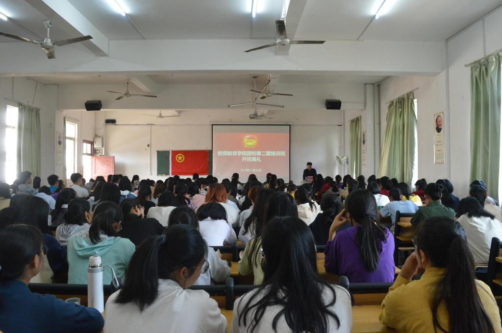 11月24日,教师教育学院团校第二期培训班开班典礼在师院C403教室举行。出席本次开班典礼的领导有党委书记梁文忠、党委副书记罗吉娟和青年委员陈驰宇。
