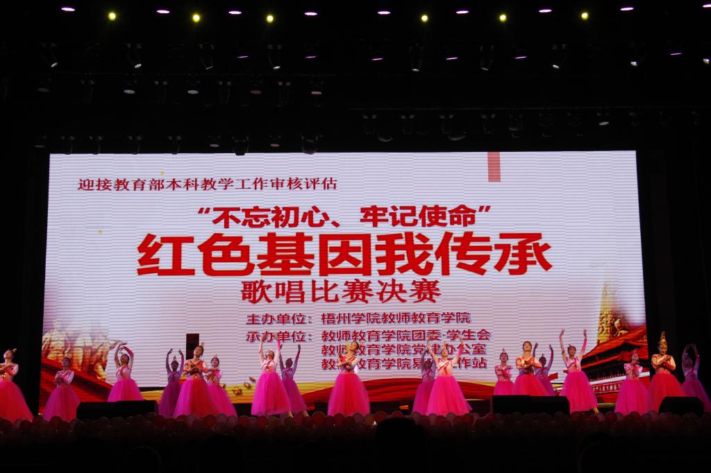 教师教育学院“师范之光”品牌系列活动之歌唱比赛是“不忘初心、牢记使命”主题教育内容之一,也是教师教育学院党委党建带团建工作的一项重要举措。《不忘初心》《梨花又开放》《天耀中国》等经典红歌在传唱中激发师生们爱党爱国的热情,展现出同学们良好的专业素养和勇担时代使命的决心。传唱经典红歌,传承红色基因。我院师生将不忘初心、牢记使命、团结拼搏、攻坚克难,全力以赴迎接本科教学工作审核评估。