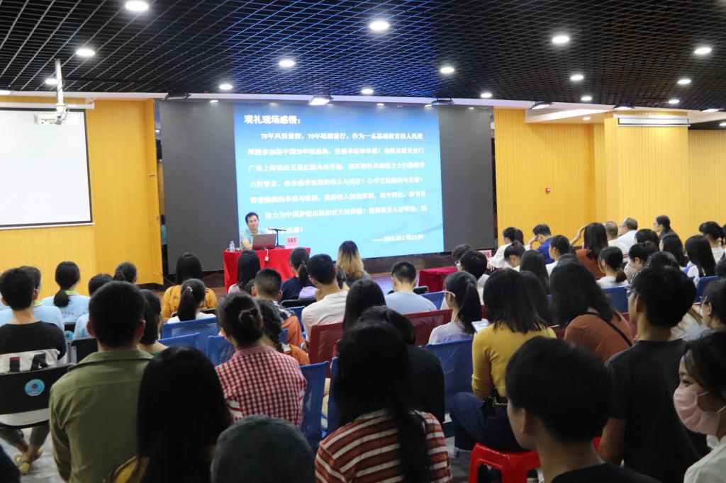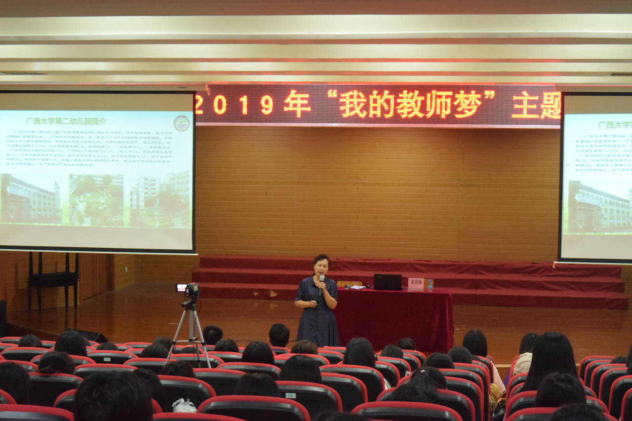 为全面深化新时代教师队伍建设改革的意见,贯彻新时代教师职业行为十项准则,积极引导广大师范生弘扬和践行社会主义核心价值观,自觉树立教师职业理想,提高政治素养和专业素养。我校在10月18日下午、晚上分别在北区体育馆负一楼路演大厅、实验楼五楼音乐厅以及师范学院校区c403举行3场“我的教师梦”主题教育报告会。我校副校长甘金明出席报告会,此外,参加报告会的还有广西师范大学教务处副处长周剑清;广西师范大学教务处教育实践办公室副主任唐晓琳。报告会主讲优秀教师分别是柳州市文华中学校长张献军,广西大学第二幼儿园园长宋肖玲,柳州市弯塘路小学校长冯玮,我校近700名师范生到场聆听。