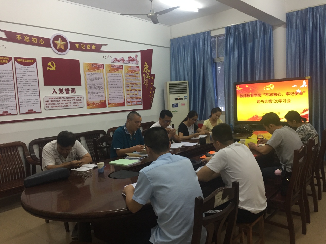 9月20日下午,教师教育学院党员领导干部“不忘初心、牢记使命”主题教育读书班第1次学习会在师范校区党员活动室举行。