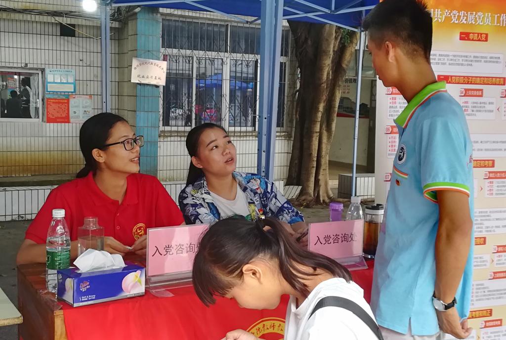 2019年9月14日,党员志愿者们的身影早早地就出现在了教师教育学院门口,他们静候着新生们的到来,接过家长手里为孩子们所准备的“沉甸甸的行李”,并且细心地为新生解答每一份入党疑惑,他们的笑脸,他们的热情,他们默默无闻的付出,使得臂膀上的“党员先锋”袖章在烈日下更显辉煌!
