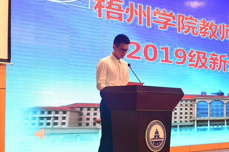 最后,谢龙华院长以风趣幽默的方式为2019级新生介绍了梧州的概况和教师教育学院的基本现状、发展历史及专业方向,让新生们更加了解并明确自己的理想信念,努力学习,做一名优秀的大学生。