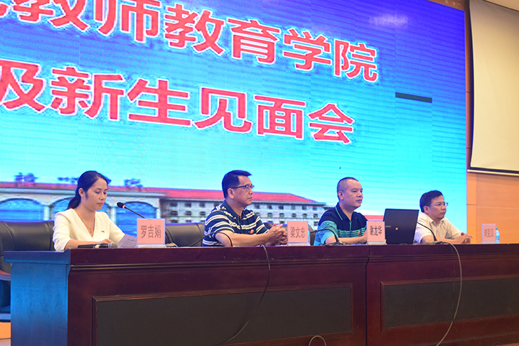 9月15日下午,教师教育学院在明理楼学术报告厅召开2019级新生见面会。教师教育学院领导梁文忠、谢龙华、罗吉娟、刘克汉,新生辅导员、各班班主任及2019级新生出席本次见面会。本次见面会由学院党委副书记罗吉娟主持。
