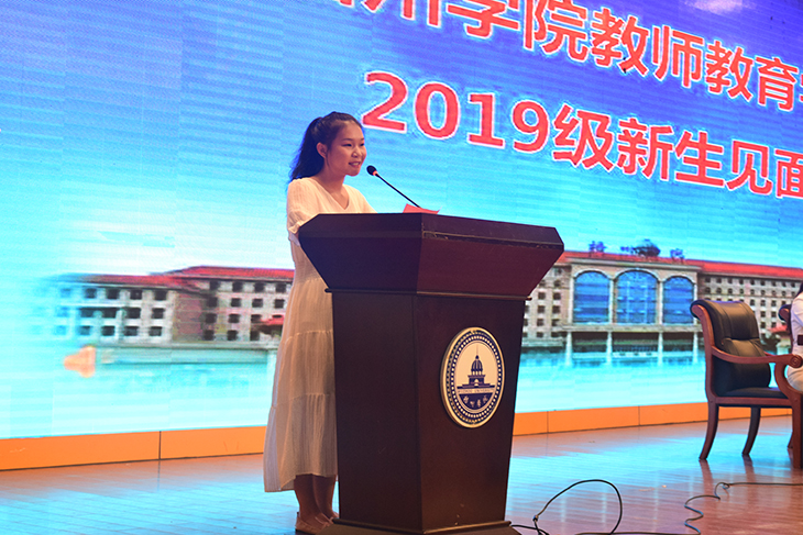一首旋律高昂的《国歌》拉开了见面会的序幕,教师代表蒙妍副教授上台发言,她讲述了自己的教育之路,并告诫新生们要好好学习,期望每一位新生能“以梦为马,不负韶华”,争做一名优秀的人民教师。随后,老生代表高上岚为19级新生分享了自己的学习经验,并希望同学们珍惜大学时光,奋力拼搏,梧院无悔;接着是新生代表19级学前教育本科班的金晓立发言,他提出新生们在大学里应该充分利用资源不断学习充实自己。