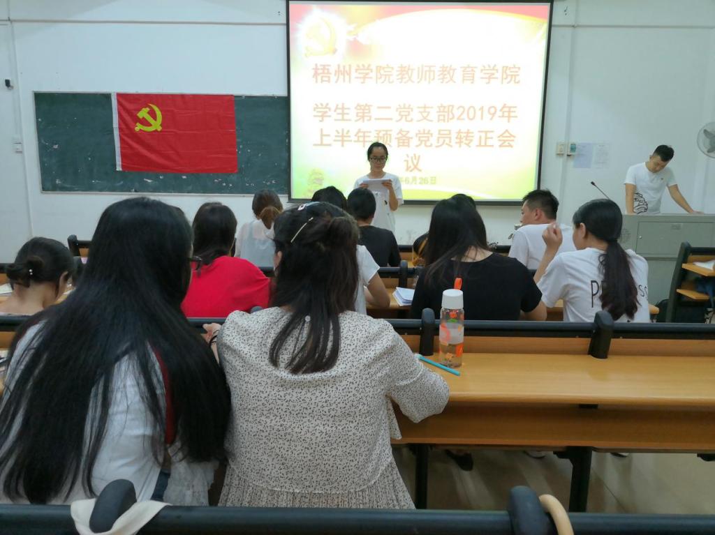 2019年6月26日晚,教师教育学院学生第二党支部在师范校区C栋503召开预备党员转正会议,会议由教师教育学院学生第二党支部书记蔡林峰主持,参加本次会议的有教师教育学院学生第二党支部全体正式党员和预备党员。