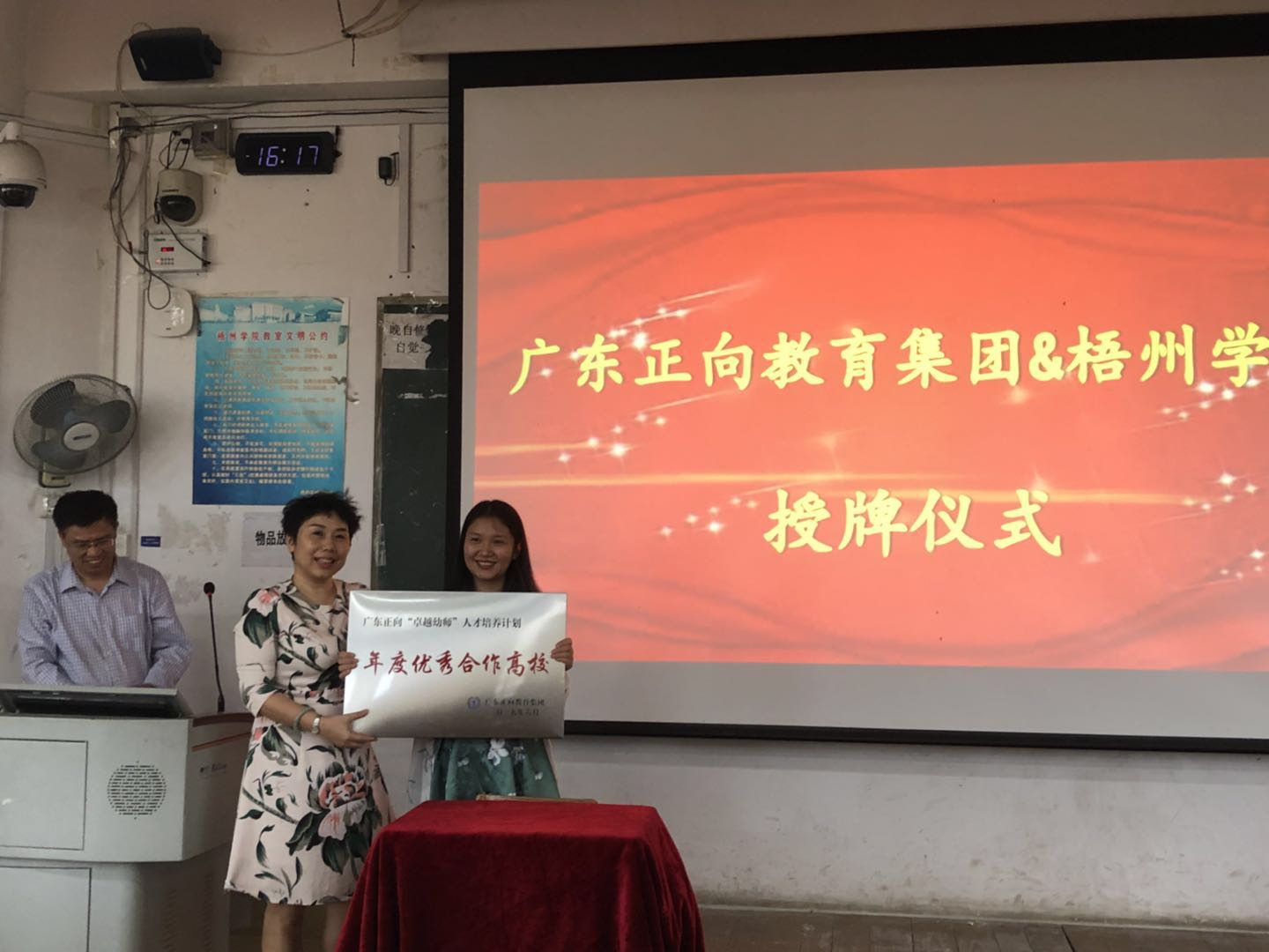 张教授以“面向未来,你们准备好了吗?”这个问题引发同学们的思考。接着,她详细解说了《幼儿园专业标准》的突出特点,提出了七个方面的能力要求,强调了其在当前幼儿园教师职业招聘中的重要地位,让同学们有了更深入的了解。随后,学院19届优秀毕业生叶志峰分享了其在正向教育集团的实习经历。讲座结束后进行正向集团&梧州学院的授牌仪式,梧州学院获得“年度优秀合作高校”。