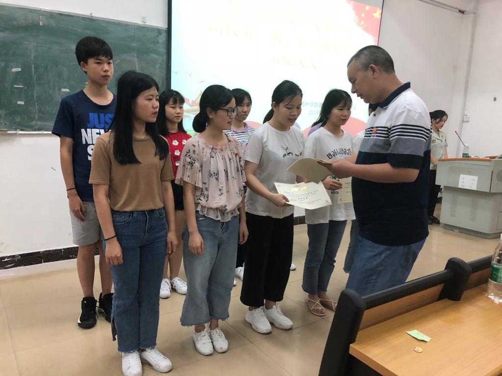 随后与会的领导老师为本期培训班的优秀学员颁发荣誉证书以及结业学员颁发结业证书。优秀学员代表韦庆珍,她从回顾本次培训课的学习、对学生干部的认识变化以及今后的实际行动做了发言,表示在以后的学习和工作中要不断地提升自身素养,自觉磨炼自己,认真履行作为一名学生干部的使命与担当。