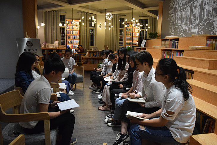 4月28日晚,教师教育学院在北区独秀书房开展以“书韵飘香,经典传承”为主题的读书分享交流会,学院党委副书记罗吉娟,教师第一党支部书记李桂茹教授与2018级各班学生代表一起分享阅读故事。