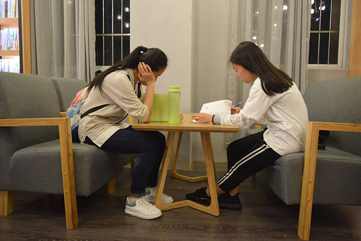 (同学们在认真研读书籍)