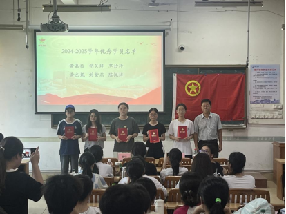 活动伊始,全体人员肃立奏唱国歌,庄严氛围拉开仪式序幕。马克思主义学院团委书记兼学生党支部书记莫万姣老师宣读2024-2025学年“青马工程”结业及优秀学员名单,马克思主义学院党委副书记罗吉娟老师、教师教育学院党委书记姚江波老师分别为结业学员、优秀学员颁发证书。